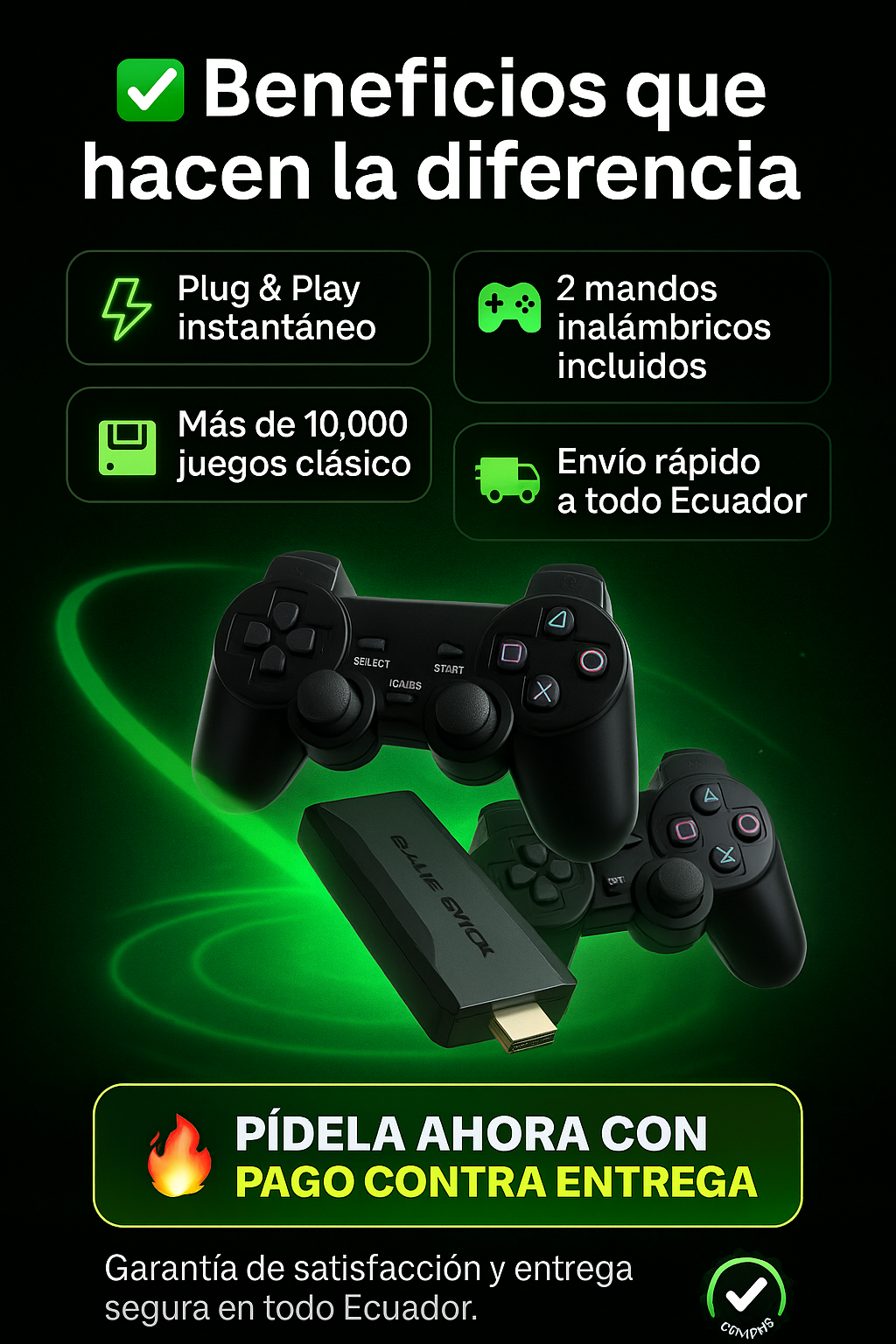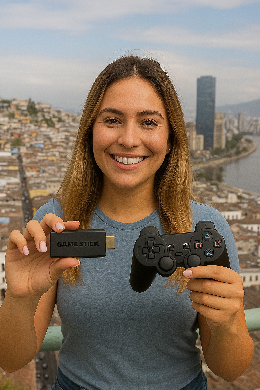 Conéctala al HDMI y disfruta más de 10,000 juegos con calidad 4K y 2 mandos inalámbricos.