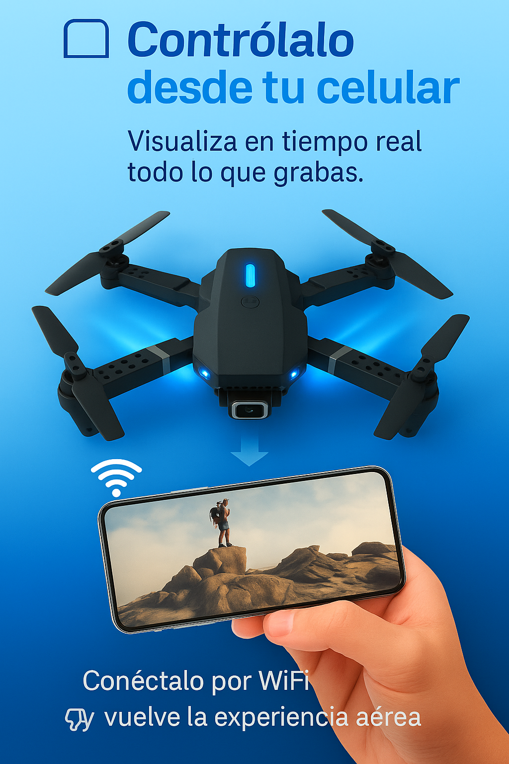 Conecta el dron por Wi-Fi a tu celular o usa el control remoto.