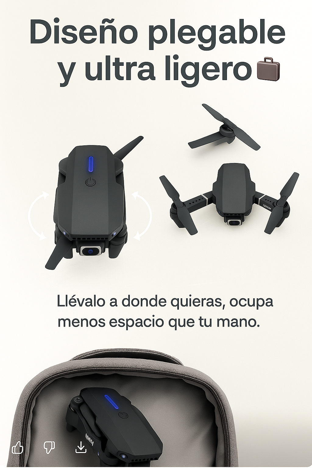 Despliega las hélices, ajusta la cámara 4K y disfruta de una visión aérea estable.