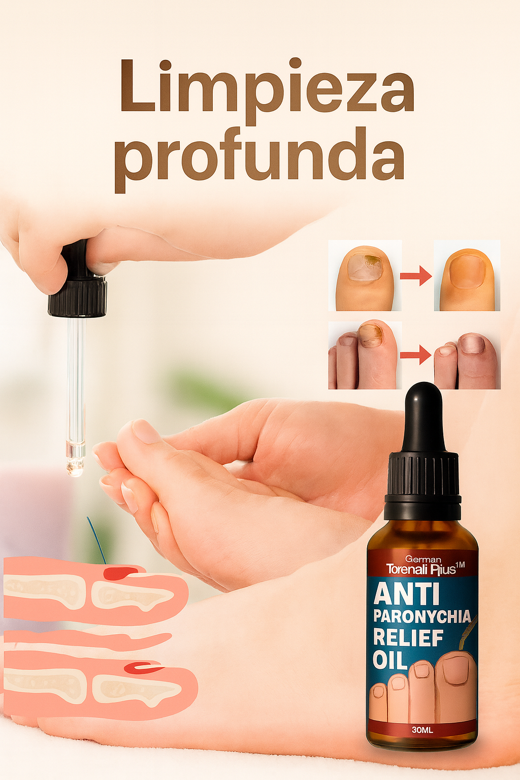 El SUERO QUE penetra en la uña y piel afectada, desinfecta, nutre y suaviza, corrigiendo gradualmente la deformidad y mejorando el color.